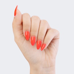 The soft brightness of this neon coral polish doesn’t waste a minute.